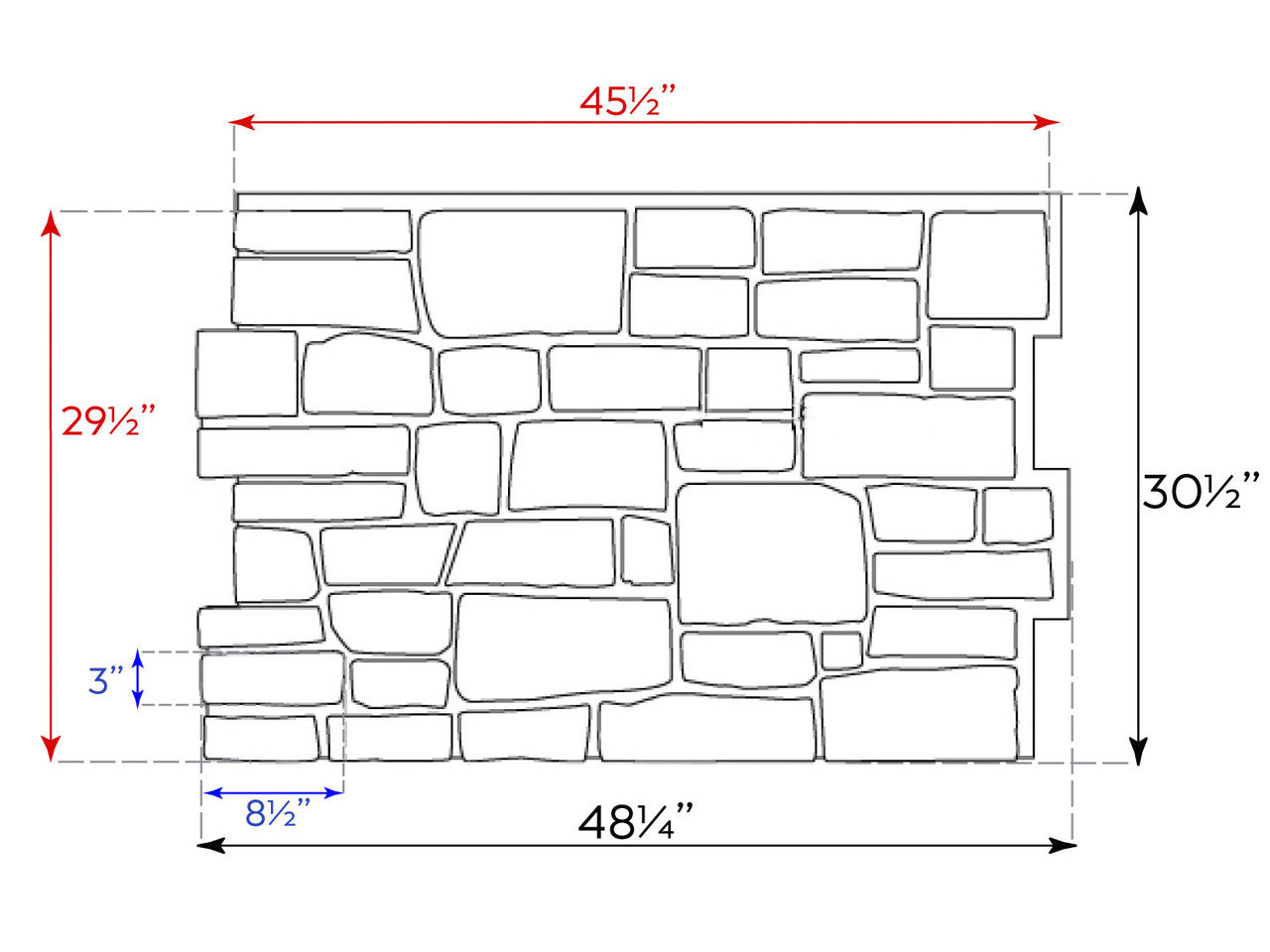 Nominal Overall Panel Dimensions: 48 ¼” Wide × 30 ½” High × 1 ⅛” Thick