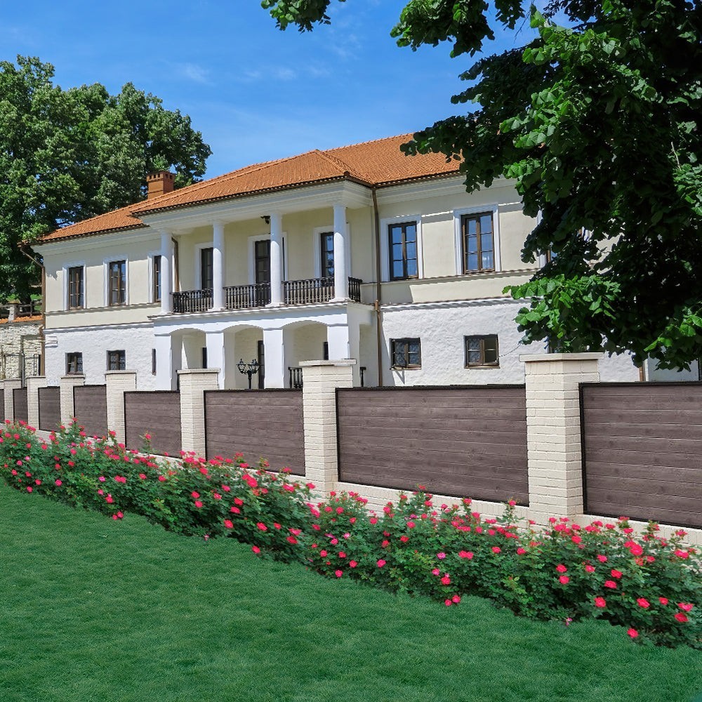 Fencing that harmoniously integrates with the greenery along the perimeter of any architectural site.